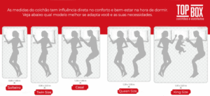 Quando vamos comprar nosso colchão, além de saber o tipo de colchão ideal, temos que nos atentar para o tamanho do colchão ou tamanho da cama box, verifique antes o espaço disponível, analise se as passagens de corredor, porta e elevadores vão permitir a passagem do colchão no tamanho desejado. Existem